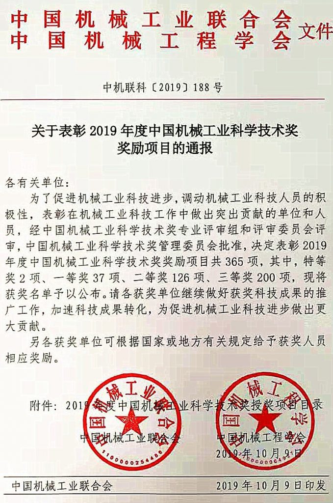 ÈÈÁÒÇì×£ÎÒ˾ÈÙ»ñ2019ÄêÖйú»úе¹¤Òµ¿Æ¼¼½ø²½½±ÌصȽ±